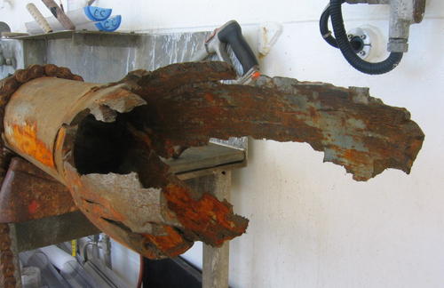 Looks like you've found where the shrapnel came from, in other words. You can see what parts made up this device, too, starting with...a thoroughly fucked up metal pipe. Like, very fucked up.. ]